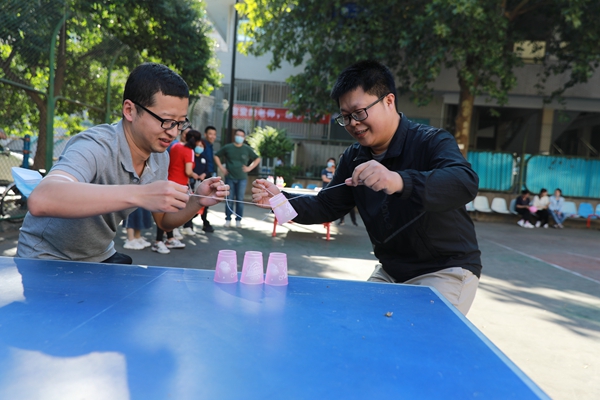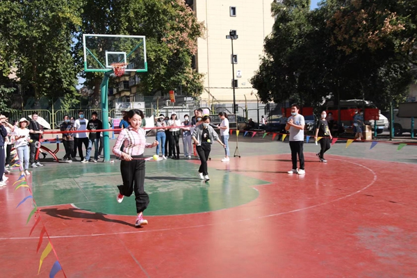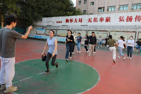 趣味运动会共设置跳小绳、踢毽子、托球跑3项个人项目,夹气球跑、套杯接力、两人三足3项自由组合项目,和跳大绳集体项目,是集趣味性、娱乐性、协作性和竞技性于一体的比赛项目,既是力量的角逐,又是智慧的较量,既是对参赛队员风采的展示,也是对团队协作力的一次检验。赛场上,运动员们在个人项目中全力以赴,在团体项目中紧密合作,各个斗志昂扬、摩拳擦掌,啦啦队摇旗呐喊、加油助威,充分展现出爱拼敢赢、团结拼搏、突破自我、勇攀高峰的精神。