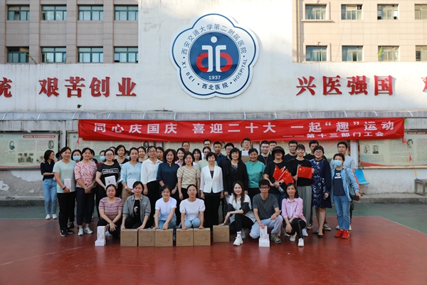 为丰富医院职工文化生活,营造健康和谐的文化氛围,践行“全民健康”和“健康中国”战略,激发广大职工的工作热情,9月28日下午,第十三部门工会在南院操场举办“同心庆国庆·喜迎二十大·一起‘趣’运动”趣味运动会,部门职工约150余人参加和观看了比赛。院党委副书记党变玲、总会计师李文博出席活动。