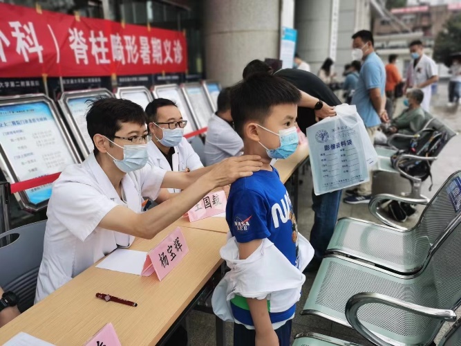 我院骨二科(脊柱外科)是国内最早开展脊柱侧凸矫形的单位之一,在贺西京教授及李浩鹏教授的带领下,先后开展了全脊椎截骨治疗极重度脊柱侧凸、胸腔镜下微创治疗特发性脊柱侧凸、生长棒技术治疗早发性脊柱侧凸等一批国际先进的脊柱畸形矫形手术。本次义诊也是科室多年来以来定期举办的公益活动,目的是普及有关脊柱侧弯的知识,帮助更多脊柱侧弯患儿得到及时、正规、妥善的治疗。