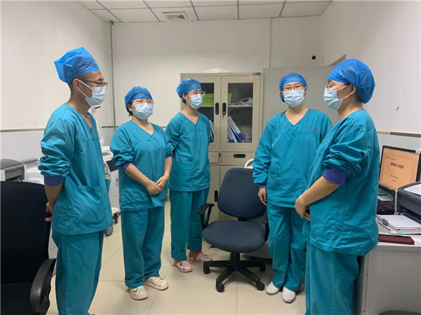 国庆假期第4天,发热单元接诊了一位正在抽搐的危重患者。患者李xx,女,64岁,主因“抽搐10余天,意识障碍17小时,发热7小时”之代诉由120急救车从某县医院转入我院急诊。送至发热单元留观时,老人家高热,浅昏迷,心率120余次/分,每十余分钟肢体抽搐一次,有糖尿病、肝硬化失代偿期等基础疾病。发热单元值班武文华和吴晓玲主治医师立即组织接诊,董春艳和于锐利护师紧密配合,予以采集鼻咽核酸、问诊查体,急请神经内科急会诊并结合外院资料仔细分析。神经内科范松华医生迅速赶到,协助发热单元及时妥当的救治患者,使患者在排查新冠期间未发生危及生命的情况。检验科值班人员以最快时间完成核酸检测,患者核酸检测回报阴性后及时解除留观,急诊科高彦霞医生及时的前来发热单元接诊患者至急诊科,进一步实施抢救、治疗。发热单元组织得当、训练有素地协同多部门通力合作、快速反应,为危重患者进一步治疗争取了宝贵时间。