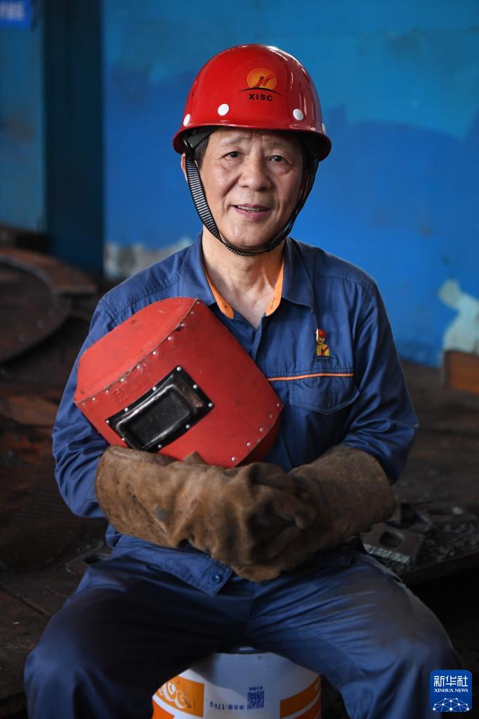 在湖南华菱湘潭钢铁有限公司厂房内拍摄的艾爱国(6月12日摄)。新华社记者薛宇舸 摄