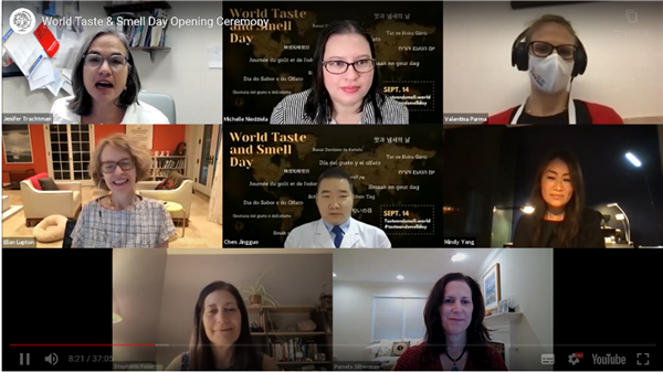 北京时间19:00,世界嗅觉味觉日的全球开幕式在线上成功召开。会议由美国普度大学的Michelle Niedziela主持。来自美国Monell化学感官研究中心的Jenifer Trachtman博士介绍了世界味觉嗅觉日的由来,她谈到在2020年4 的时候,来自中国的陈敬国博士向Monell的Danielle Reed教授提议设立世界味觉嗅觉日,在多方努力下,世界味觉嗅觉日最终设立在9月14日。来自美国、英国、法国、德国、尼日利亚等国家的医生、科学家、患者组织领导人等讨论了嗅觉味觉对人类生活的影响,探讨了嗅觉味觉研究的国际合作。与会人员包括Oghogho Braimah (尼日利亚), 陈敬国(中国), Stephanie Feuer (美国), Michelle Niedziela (美国), Valentina Parma (法国), Jenifer Trachtman (美国), Mindy Yang (美国)。其他来自全球的超过100余人旁听了会议。