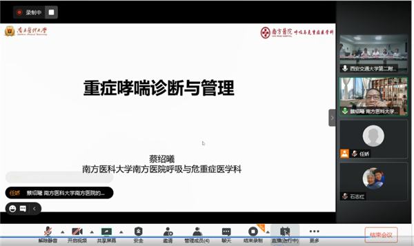 会议主场设立在西安交通大学第二附属医院呼吸与危重症医学科,每场会议由科室主任杨拴盈教授主持并致开幕词。科室德高望重的老专家、曾任中华医学会呼吸病学分会常委、原呼吸与危重症医学科主任杨德昌教授,陕西省有突出贡献的专家、原中华医学会变态反应分会常委、原呼吸与危重症医学科主任孙秀珍教授,原呼吸与危重症医学科主任、内科学系副主任李雅莉教授,以及张洁副主任、刘昀副主任、方萍副主任、董西林教授、杨侠教授和科室中青年医师们均在现场参加了会议。