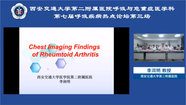 肺部影像专场,多位国内著名影像学专家一同参会,中华医学会放射学会常委兼心胸学组组长、西安交通大学第一附属医院放射科郭佑民教授从影像学角度出发,结合自身丰富的实践经验来辨析肺部感染的可能病因;我院影像科李润明教授对类风湿关节炎的胸部影像学表现进行了详细介绍;中华医学会放射分会心胸学组顾问、北京医院放射科陈启航教授则聚焦呼吸科医师关注的热点——肺部弥漫性磨玻璃影的CT表现做出了精彩讲授;中华医学会放射分会心胸学组委员、中日友好医院放射科刘敏教授针对肺部少见血管疾病的影像表现及鉴别诊断进行了系统阐述;我院呼吸与危重症医学科明宗娟副主任医师展示了自己参与诊治的六例临床少见病例,加深了大家对胸部影像诊断的认识,并展开了热烈的讨论。