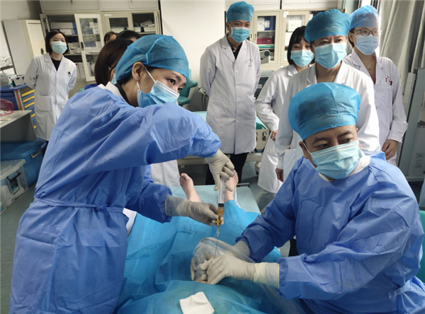依照围产诊疗规范,该孕妇属于高危病例,医院立即启动先天性畸形围产诊疗应急程序,组成由小儿外科专家高亚教授任组长的专家团队,多学科专家进行联合会诊,制定缜密的处置方案和应急预案,决定为孕妇进行先行超声引导下经子宫胎儿颈部水囊瘤的微创抽吸治疗术,然后立即行剖宫产。