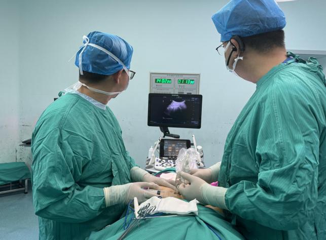 经术中超声辅助定位、术中测试,确认患者双侧S3神经感觉与运动应答均较差,左侧S2测试患者获得了“左侧臀部、大腿根部及肛门周边感觉良好应答、左侧足底跖屈反射刺激应答明确且无腓肠肌震颤、在增加脉宽后会阴部左侧区域感觉应答明确”,依据西安交大二附院“尿控与盆底修复”诊疗团队在完全脱离X线-B超辅助定位骶神经调控疗法个体化手术经验,术中确定选择患者左侧S2神经孔置入电极并确认深度并精准释放,术中最低测试电压0.5V,等待患者术后体验治疗24小时、完成X线电极定位复查,开始骶神经调控Stage1体验治疗。