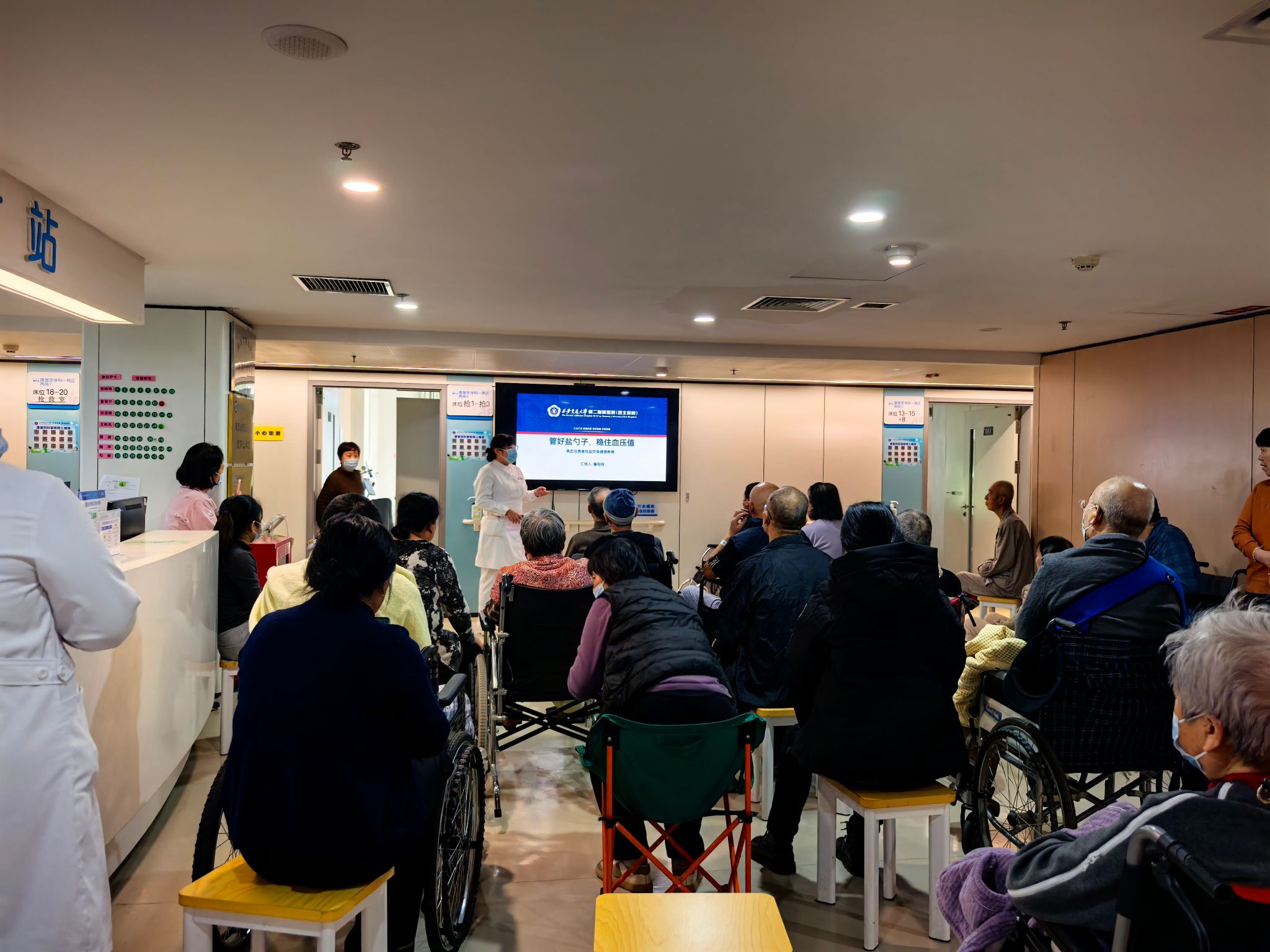 “五星红旗迎风飘扬,胜利歌声多么响亮......”2026年1月10日下午四点西安交通大学第二附属医院的康复医学科传来了阵阵歌声。原来是康复医学科每月一次的患者交流会,康复科护士田鲜花和訾程程在护士长杨峰的安排下组织患者进行科普宣教和人文关怀。