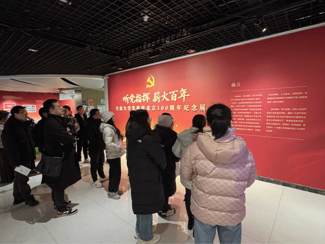 为庆祝交通大学党组织成立100周年,深入学习贯彻习近平新时代中国特色社会主义思想,传承红色基因、弘扬西迁精神,2026年1月21日下午,医学检验科全体党员前往西安交通大学兴庆校区博物馆,参观“听党指挥 薪火百年——交通大学党组织成立100周年纪念展”,开展主题党日活动。