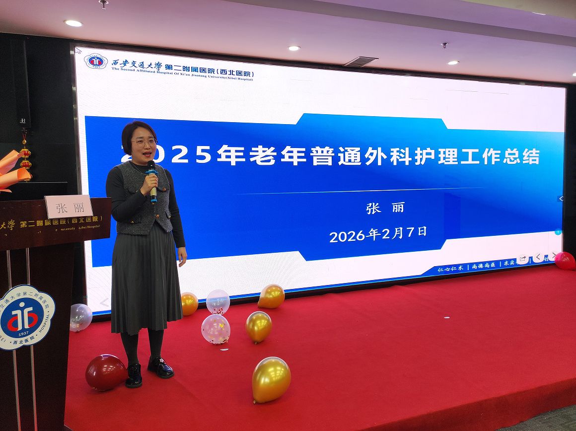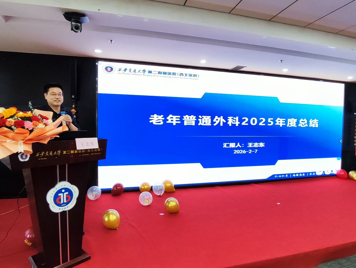 2026年2月7日,西安交通大学第二附属医院老年普通外科以“精医笃行・聚力启新”为主题,在大明宫院区召开2025年度工作总结暨高质量发展研讨会。院党委副书记党变玲受邀出席会议并作指导讲话,全科医护职工、留学生等齐聚一堂,回首2025年的耕耘与收获,共话2026年的发展与蓝图,为科室高质量发展凝聚奋进共识、汇聚前行力量。