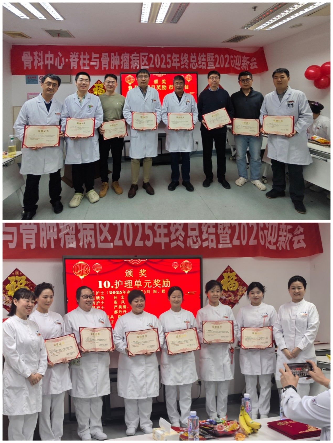 近日,我院骨科中心·脊柱与骨肿瘤病区召开2025年终总结暨2026年迎新会。会议全面回顾了过去一年病区在医疗、护理、科研、教学及学科建设等方面取得的丰硕成果,表彰了年度涌现出的先进个人,并擘画了新一年的发展蓝图。