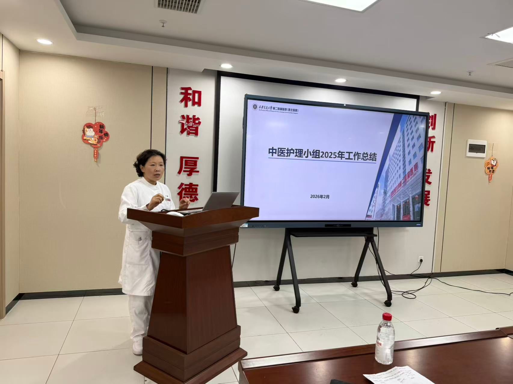 分享结束后,中医护理小组组长杨海侠围绕2025年中医护理小组工作进行全面总结,回顾了过去一年小组取得的工作成绩,充分肯定了各科室在中医护理工作中付出的努力与收获的成效,同时清晰部署了2026年中医护理小组工作计划,明确了新一年的工作目标与核心任务,为全年工作开展指明了方向。