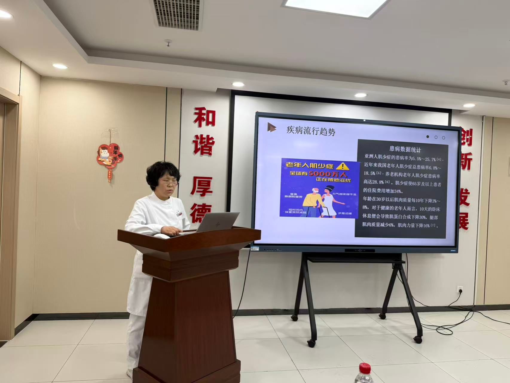 理论授课环节邀请到老年神经内科的张红梅主管护师对中医护理小组全体联络护士进行了“老年肌少症护理”的理论培训。