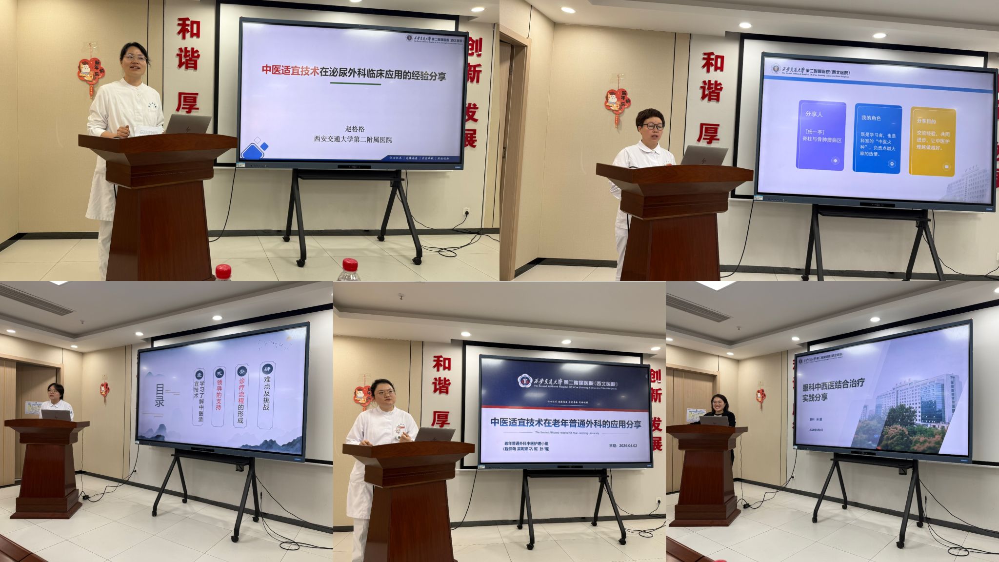 会议分享交流环节分别由来自泌尿外科的赵格格主管护师、脊柱与骨肿瘤病区的杨一亭主管护师、心血管病院张睿主管护师、老年普通外科程佳萌护师、眼科孙超主管护师、中医科李金娥主管护师等来自六个临床科室的中医护理小组联络护士,依次结合各自科室专科特色与临床实践,详细分享了近年来科室推广及应用中医适宜技术的宝贵经验与丰硕成果。六位老师围绕科室中医适宜技术应用、流程、效果评价、患者满意度反馈等方面展开全面阐述,通过真实案例、实操数据,生动展现了中医适宜技术在减轻患者病痛、促进疾病康复、提升护理服务质量中的独特优势。分享过程中,各个科室的中医护理小组联络员积极交流探讨,相互借鉴优秀做法,针对技术开展过程中的难点问题展开深入讨论,碰撞出中医护理创新发展的思想火花,为后续各科室优化中医护理服务、拓宽技术应用范围奠定了坚实的交流基础。
