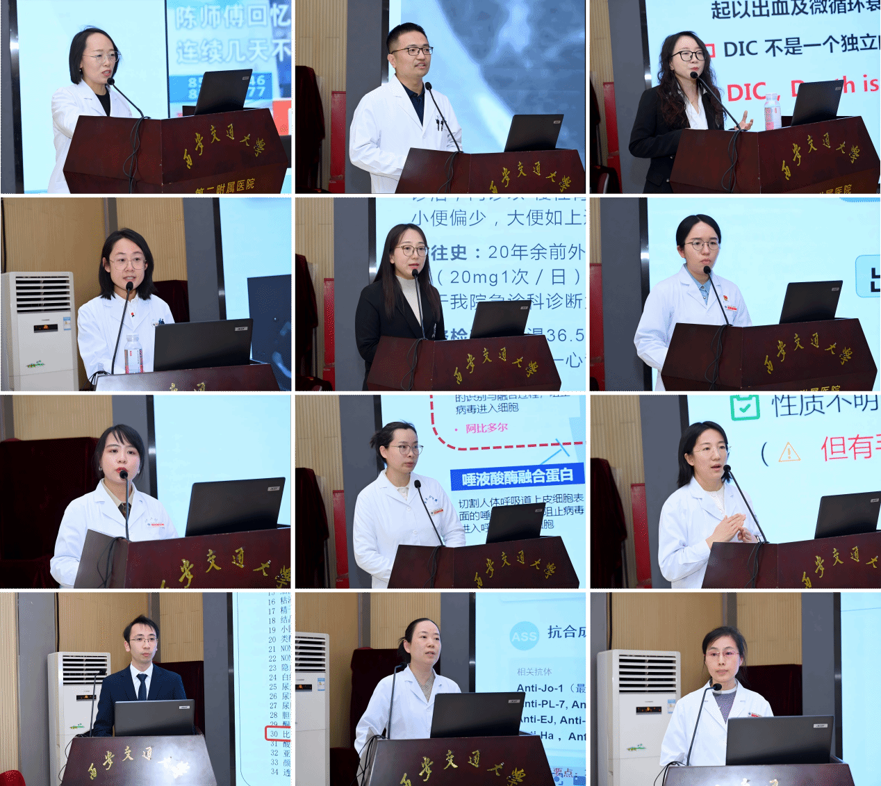 在教学竞赛环节,来自9个临床科室的12位优秀青年住培教师同台竞技,展现教学风采。本次竞赛特邀各亚专业科室主任及教学负责人组成权威专家评审团,包括:肾病科主任付荣国、消化内科主任李路、内分泌科主任张春虹、感染科主任贾晓黎、风湿免疫科主任李学义、呼吸科教学主任史红阳、血液科教学主任白菊、肝病科教学主任赵文学。同时,创新性地增设“学员评委”席位,由各亚专业推选一名住培学员参与评分,从教学受众视角提供宝贵反馈,真正体现了“以学员为中心,教学相长”的育人理念。经过激烈角逐,韩婕老师荣获一等奖;雷福茜、崔小萌老师获得二等奖;赵鹏、厚荣荣、张亦琳老师获得三等奖;王楚莹、石娟娟、单虎、柯蕊、高宁、杨欣老师获得优秀奖。他们以扎实的专业功底、创新的教学设计和生动的现场表现,尤其是雷福茜老师的双语教学和赵鹏老师以“尿常规的解读”为主题,充分展现了内科青年师资的教学活力与专业素养。
