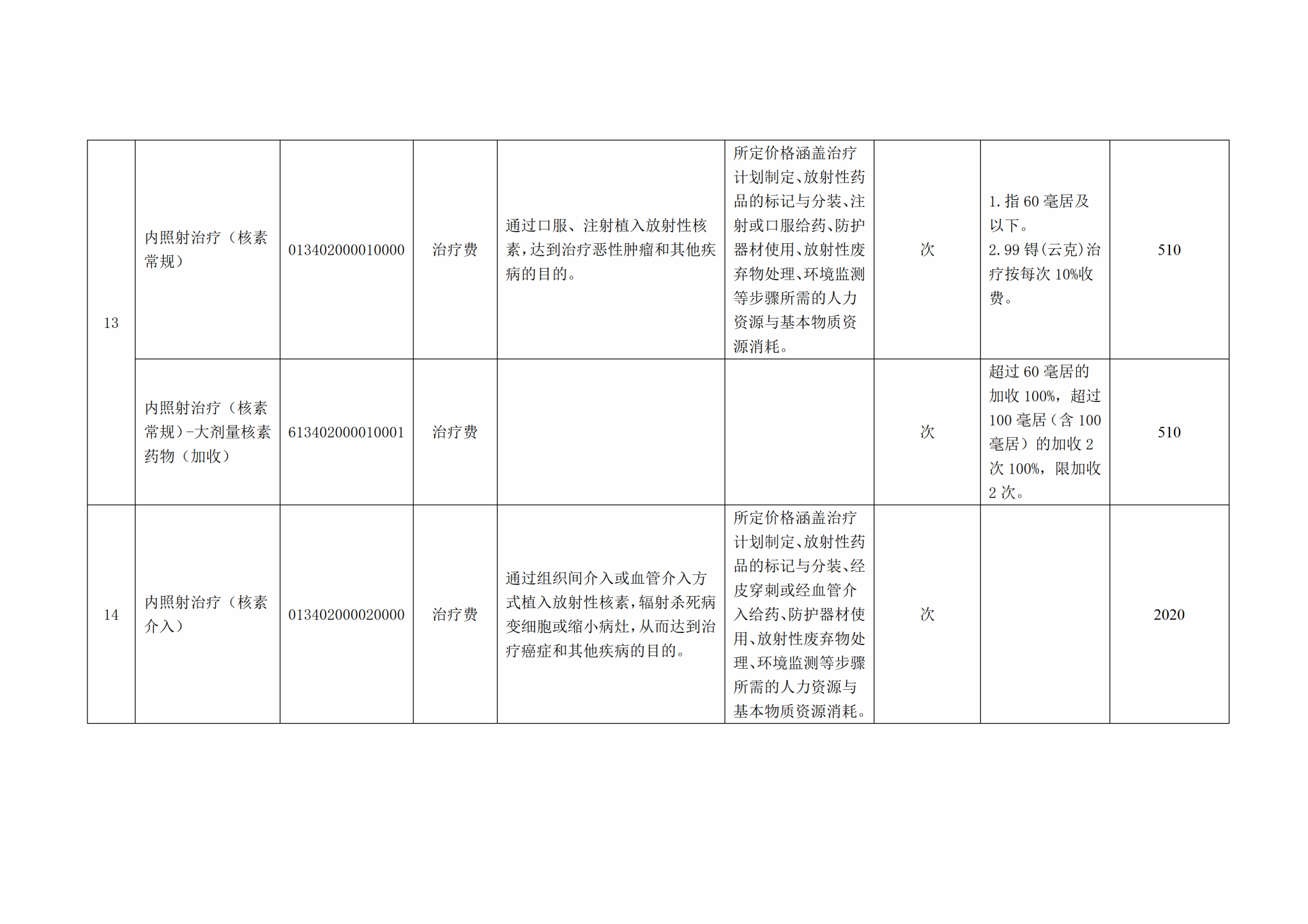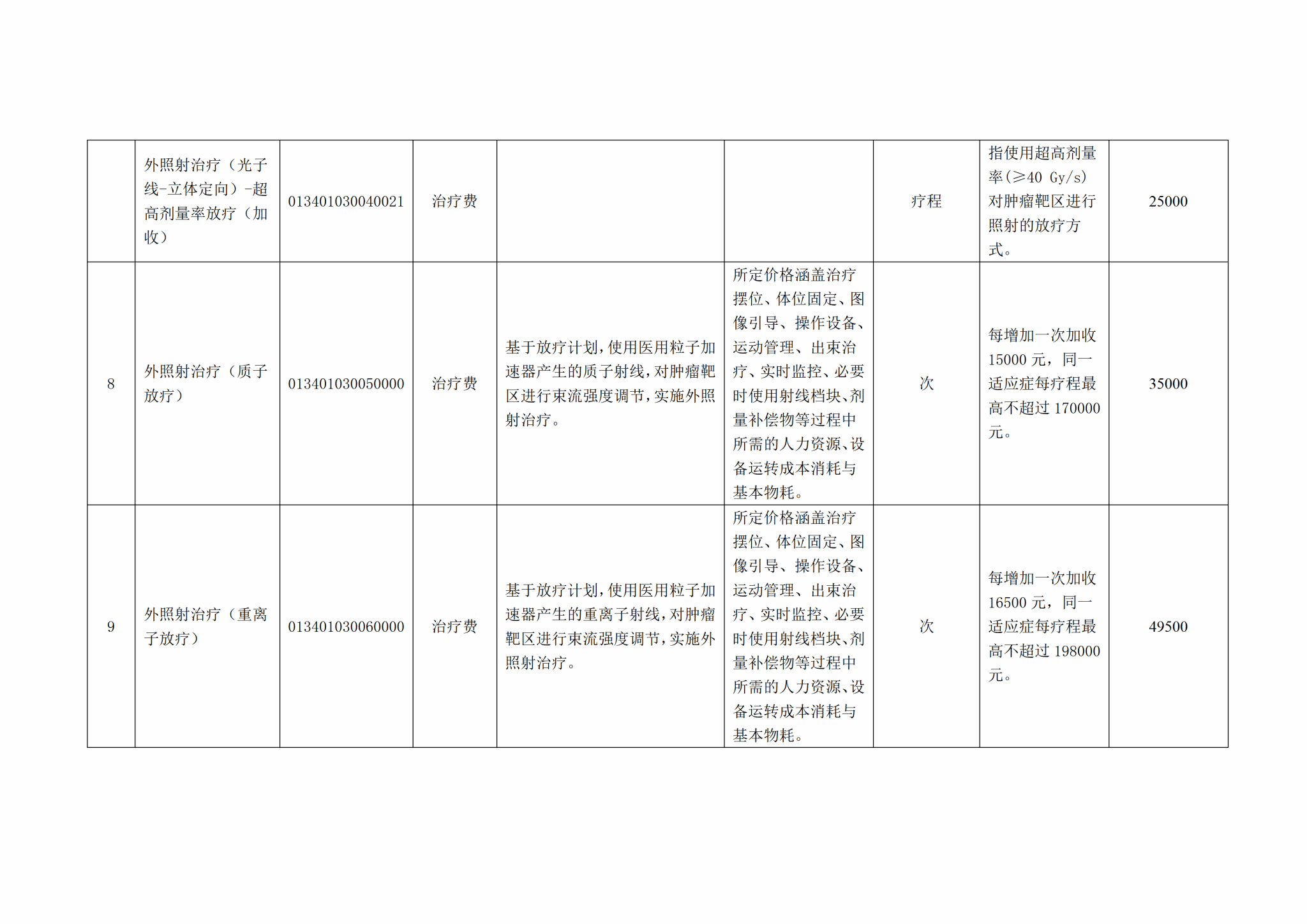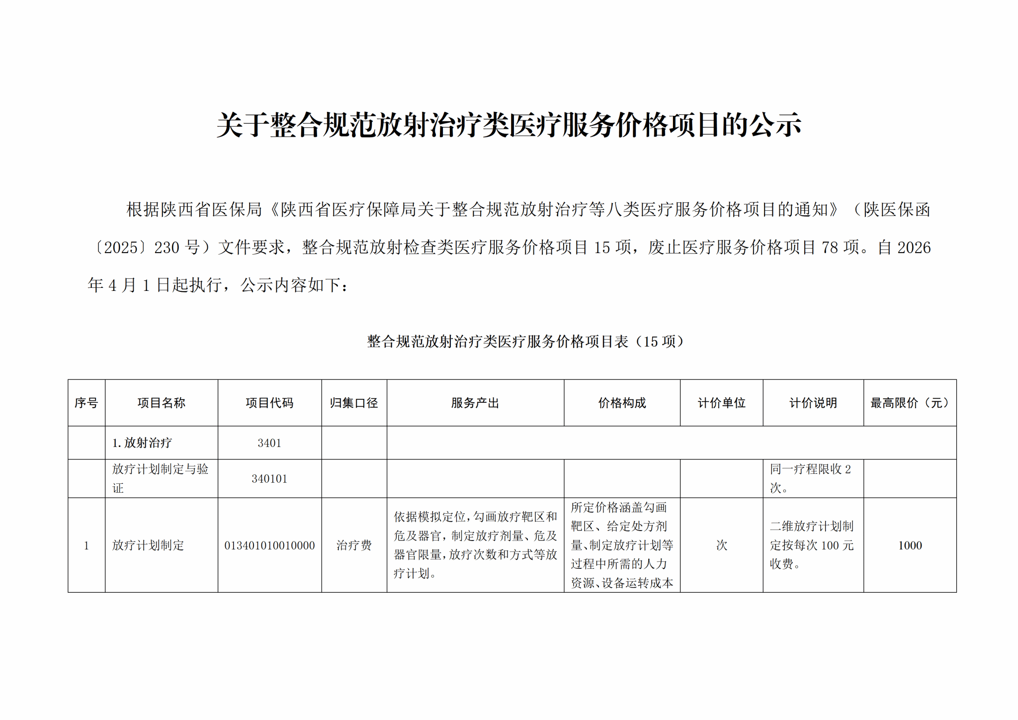 关于整合规范放射治疗类医疗服务价格项目的公示