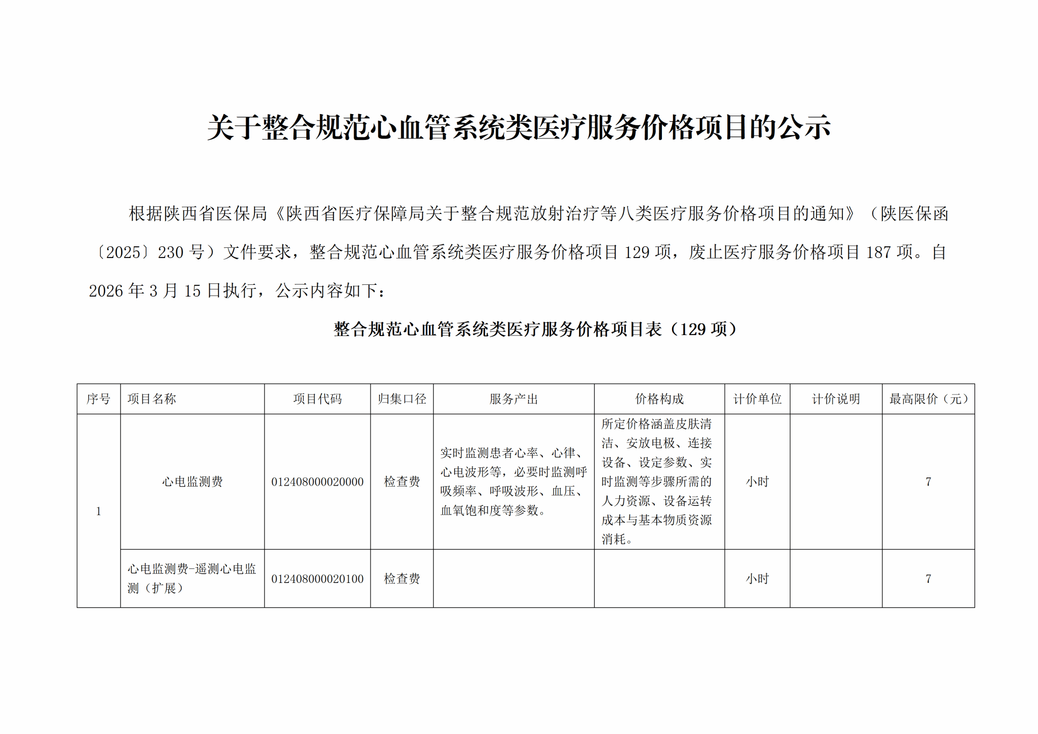 关于整合规范心血管系统类医疗服务价格项目的公示