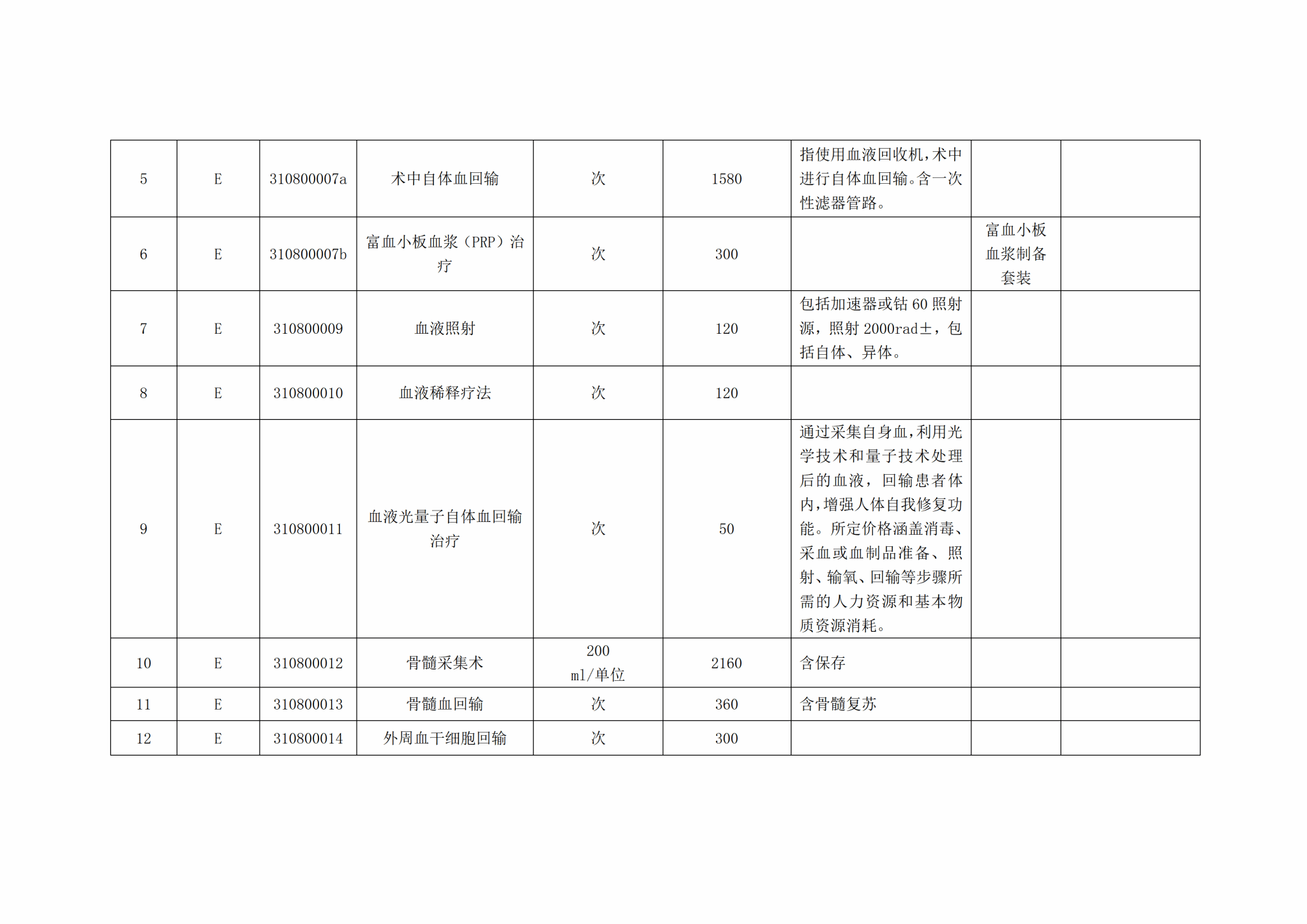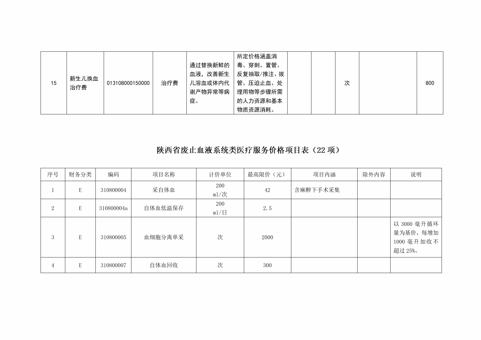 关于整合规范血液系统类医疗服务价格项目的公示