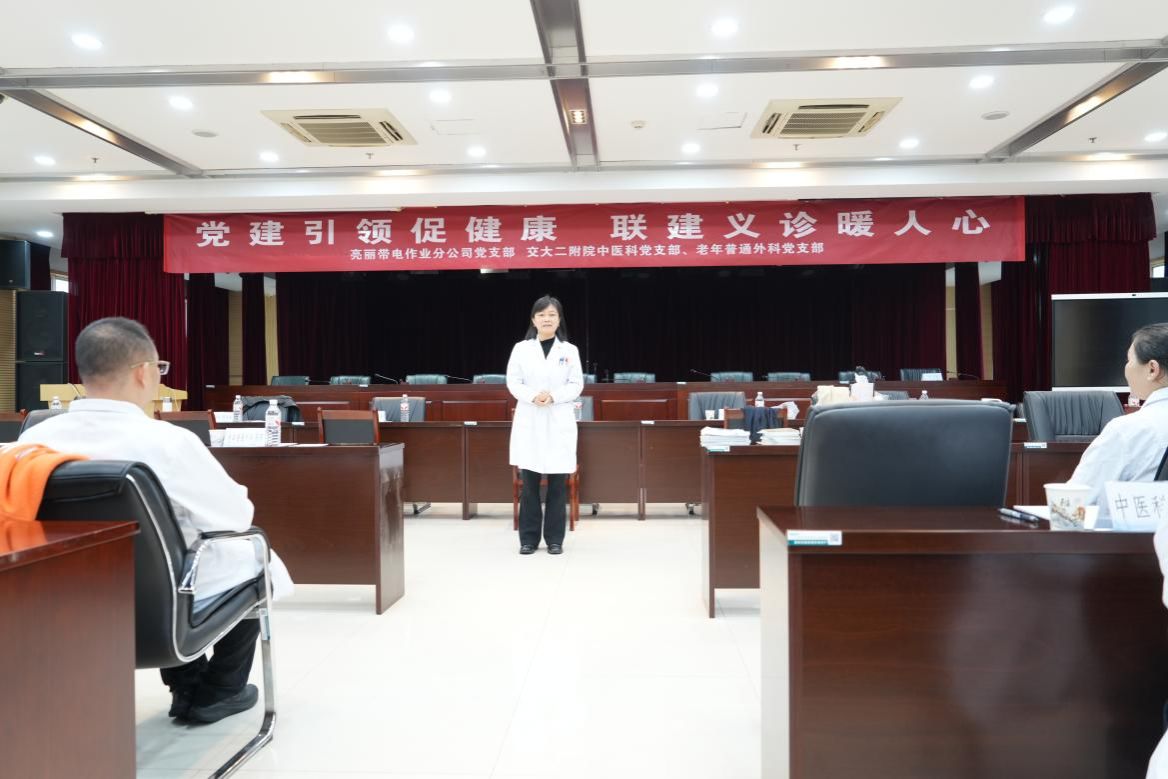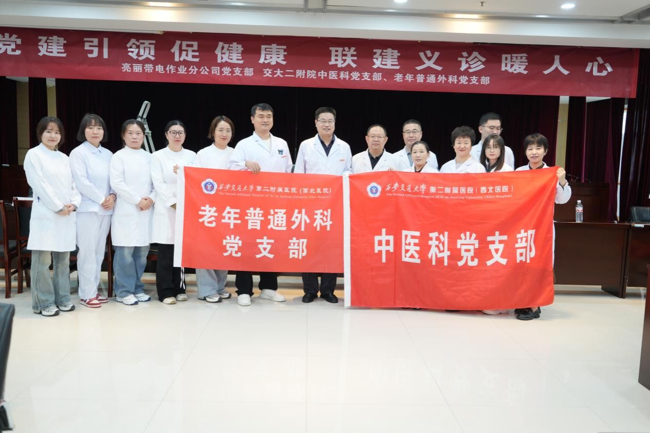 为深入践行以人民健康为中心的发展思想,充分发挥基层党组织的战斗堡垒作用和党员的先锋模范作用,2025年10月12日,西安交通大学第二附属医院中医科党支部与老年普通外科党支部联合组建医疗专家团队,走进国家电网西安供电公司市北分公司,与亮丽带电作业分公司党支部共同开展“党建引领促健康,联建义诊暖人心”主题义诊活动,将优质、便捷的医疗服务送至企业职工身边。