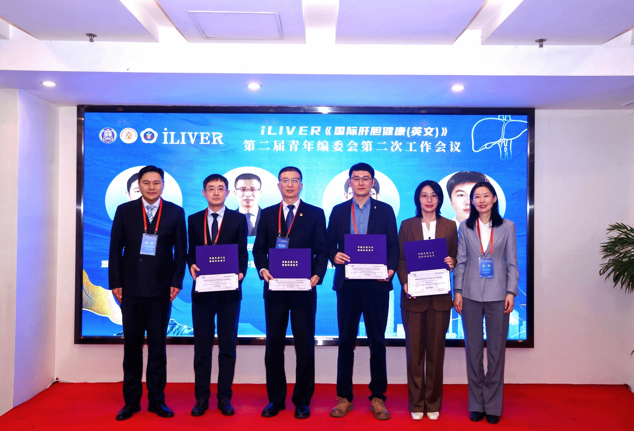 由清华大学出版社副总编孙宇教授为青年编委们颁发聘书,聘任首都医科大学附属北京友谊医院吴晓宁教授、山东第一医科大学附属省立医院范修德教授、西安医学院全科医学研究所冯巩教授、上海中医药大学附属岳阳中西医结合医院袁建勇教授、香港中文大学(深圳)附二院/龙岗区人民医院彭青教授、中国科学院深圳先进技术研究院秦文健教授、海军军医大学秦婴逸教授、南京医科大学第二附属医院史艳龙教授、福建医科大学孟超肝胆医院唐世川和赵必星教授、上海东方肝胆外科医院王明达和吴寒教授、中南大学湘雅三院庄权教授、北京清华长庚医院王思远教授、空军军医大学唐都医院张野教授、四川大学华西医院张勇教授、武汉大学中南医院朱倩教授等为iLIVER青年编委。他们中既有临床技术精湛的专家,也有深耕基础研究的学者,还有交叉学科的创新者。这一刻,会场星光熠熠,一张覆盖全国、连接多学科的年轻学术网络就此加固,预示着iLIVER未来将获得更为多元、强劲的支持,体现了iLIVER青年编委梯队的持续活力与成长。